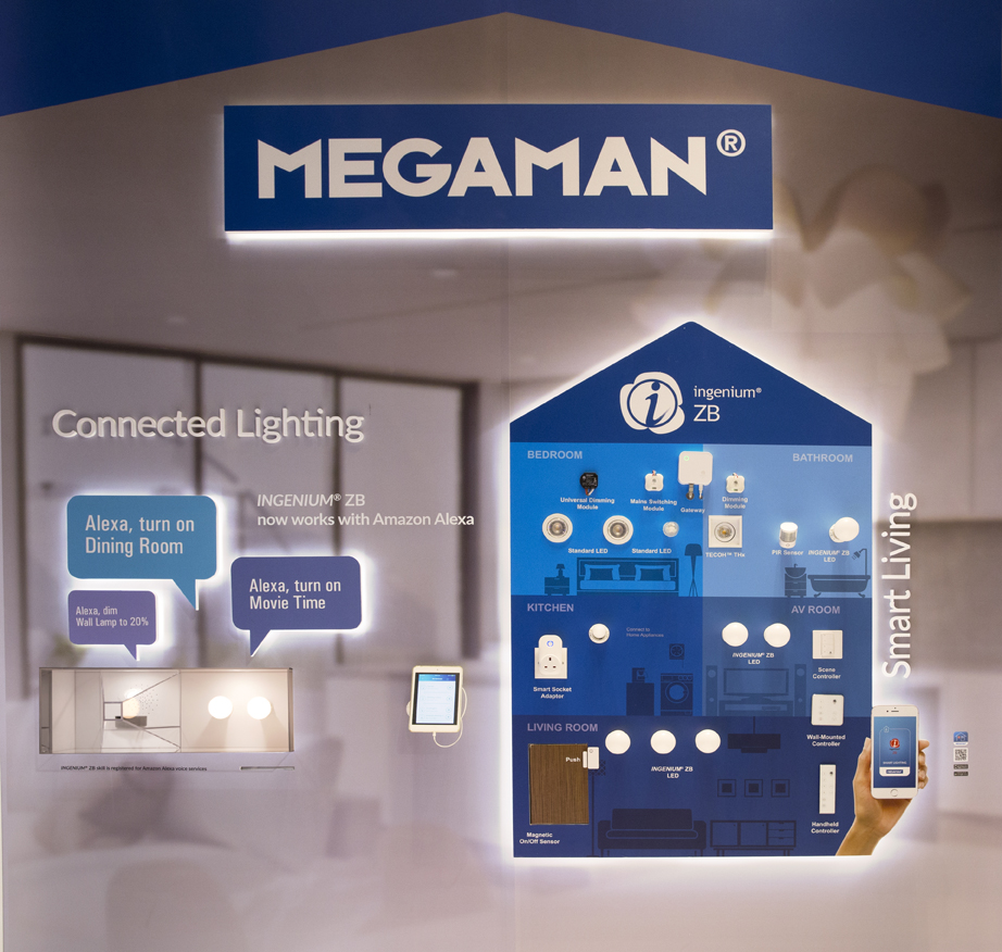 曼佳美®熒智® ZB 智能照明展區 - 帶參觀者走入未來科技世界,利用配置了新增功能的控制系統,讓參觀者親身體驗智能照明的無限可能。 熒智®智能照明方案現兼容亞馬遜Alexa語音聲控功能,助你更便捷聲控家居或商用的各種照明設備。 此方案採用ZigBee®技術,兼備可靈活擴充的優點,可緊隨你的需要增添不同的設備,讓智能生活更方便和個性化。
